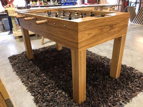 The Buckhead Foosball cabinet is constructed of 5/4″ solid wood. Our handles are hand-turned in Ash and stained to match.